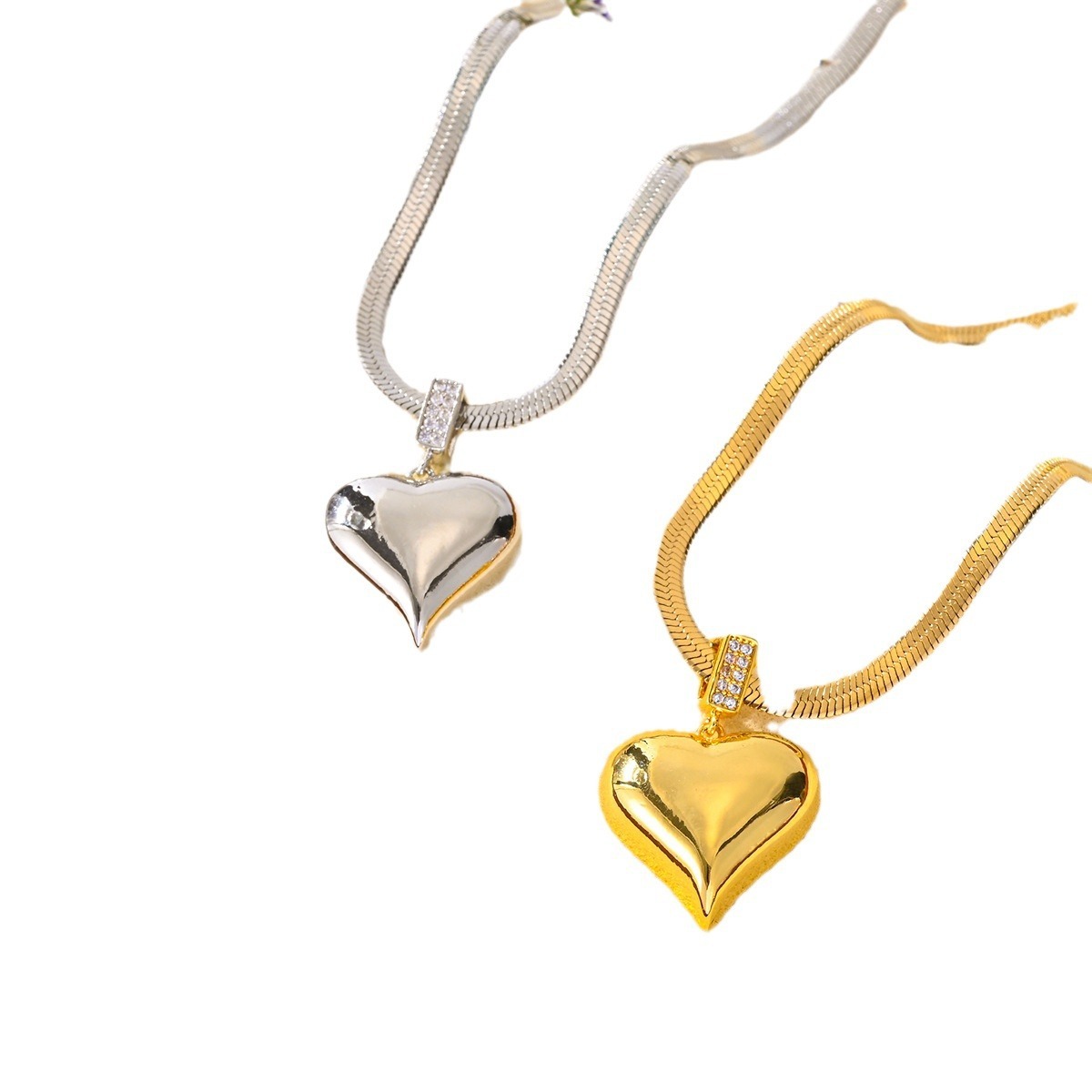 Chaîne en acier inoxydable avec pendentif en forme de cœur.