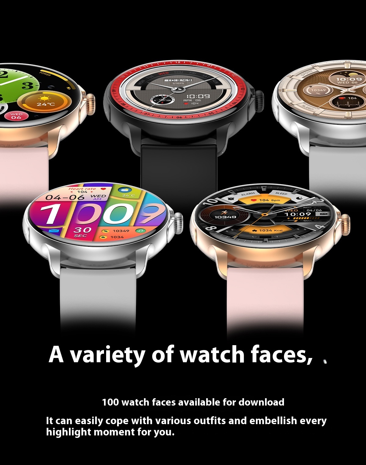 Fonctions : prise de photo, comptage des pas, surveillance de la fréquence cardiaque, appel Bluetooth, rappel intelligent, détection d’oxygène dans le sang
