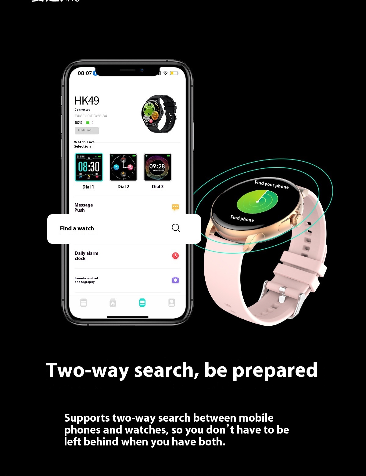 Montre de sport étanche avec appels intelligents, Bluetooth HK49, moniteur de sommeil, de fréquence cardiaque et de glycémie
